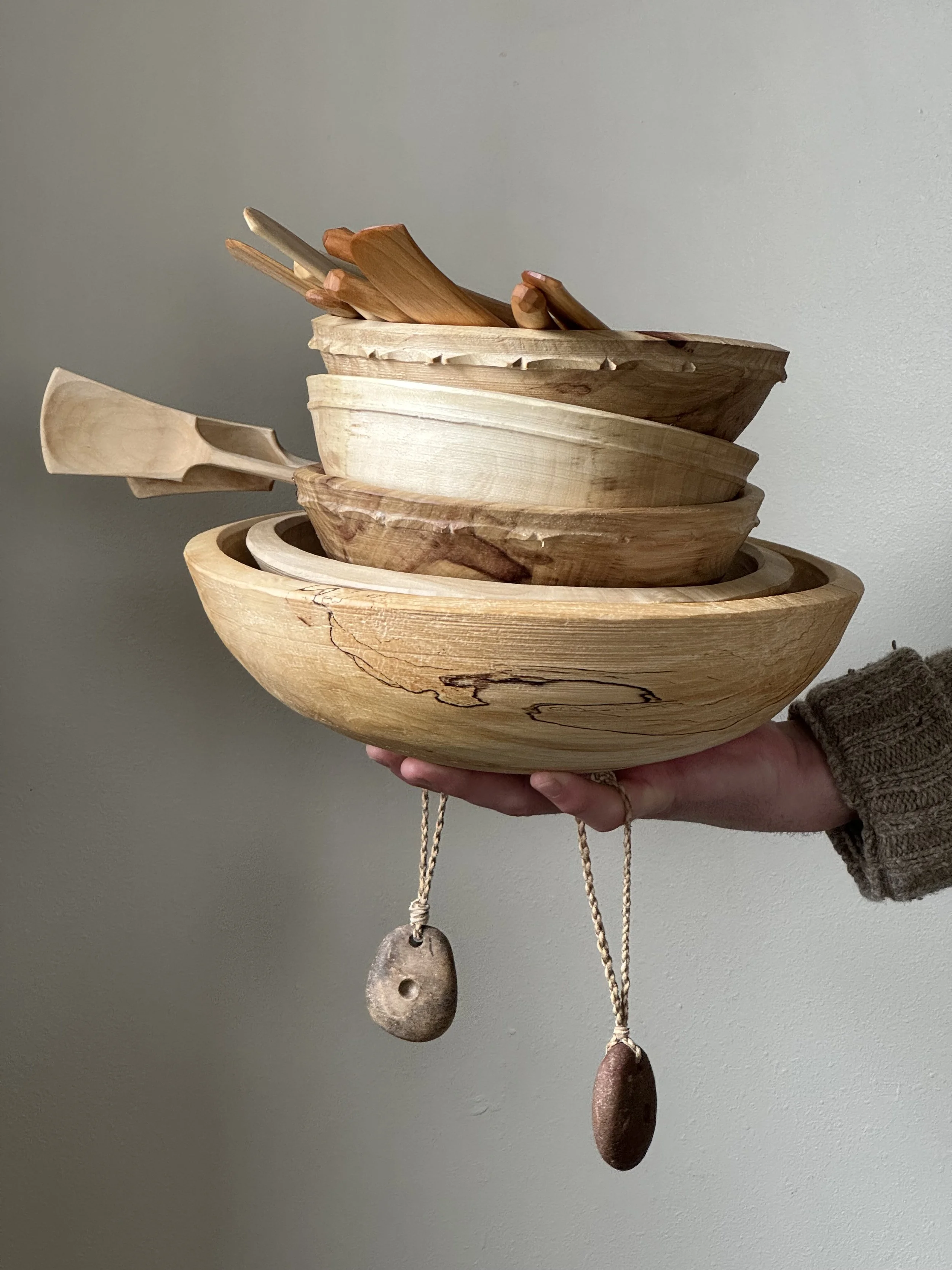 Bowls come in all kinds of forms, designs, woods, and sizes and each one has a unique character and life to it. That’s one of the beautiful things about using a pole lathe turned bowl, it has life that simply cannot be replicated by machines. If you are interested in commissioning a set or singular bowl reach out to me and we can discuss the details of how we can make your vision come to life. Take a look at some of the examples I’ve shown here and on my Instagram to get an idea of what you might like, or I’m also happy to surprise you!