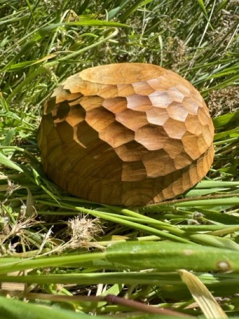 Bowls but with a lid and of course a twig finial! These are turned on a foot powered pole lathe, and then carved with textured facets or left natural off the lathe. These can be made to a variety of dimensions, perfect for anything from a small jewelry or knick knack container, up to a larger potluck food dish.